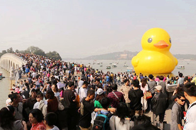 家和地区的23个城市,不管游到哪,这只萌萌哒大黄鸭都会引起万人空巷的场面!