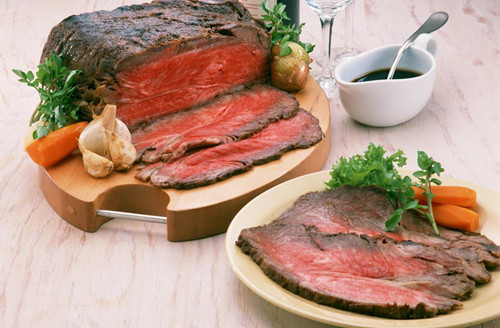 瘦牛肉——100克熟 瘦臀牛排,包含大约6.7克脂肪和80毫克胆固醇。美国饲养的食用 谷物的牛,出产的