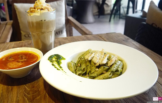 酷乐亚洲 诚意推荐酷乐咖啡最受欢迎的美食——门店美食排名第二十八位:罗勒鸡肉通心粉。