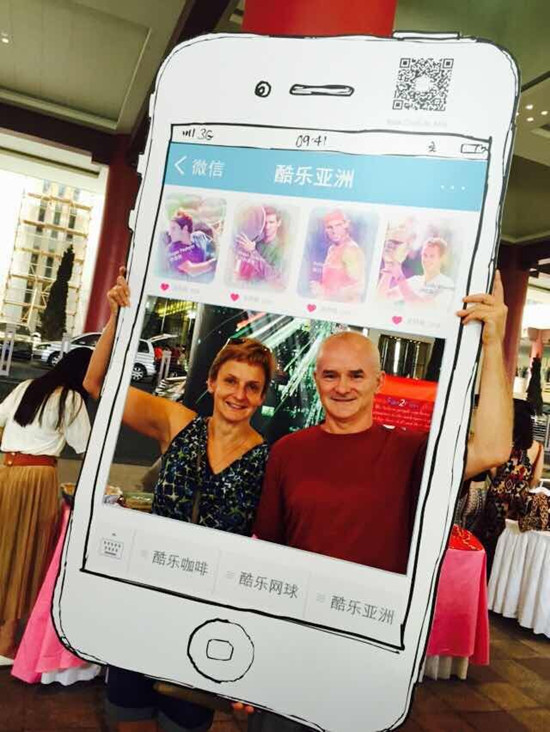 酷乐网球 的两位姐妹花原本是安安静静的美女子,但是为了这次活动也是蛮拼的,为了跟客人更好的互动 和让客人享受优惠大师赛门票,不仅卖力,和小朋友也打成一片。