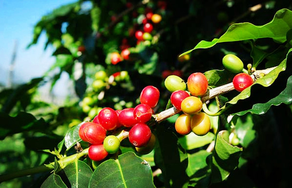 也 就是咖啡果实。在开花后八九个月,咖啡树开始结果,从绿色逐渐成熟变成鲜红色,完全成熟之后像MINI版的樱桃。